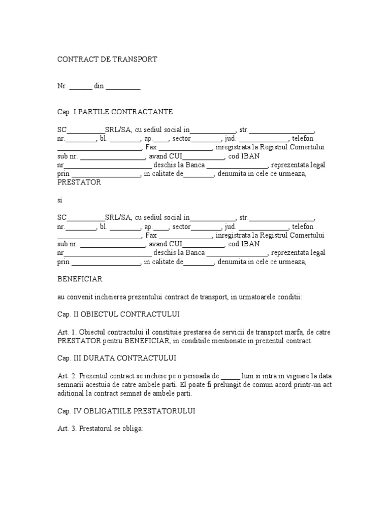 See below the list of goods contracts concluded with our transport partners. Beneficiarul a solicitat sa ii fie prestate servicii de transport intern de marfa,. Contract de transport obiectul contractului.
